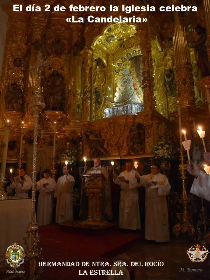 En el mes de febrero (primer fin de semana), se celebra La Candelaria, en el Santuario de la Virgen del Rocío, con la emotiva presentación de los recién nacidos almonteños a la Blanca Paloma.