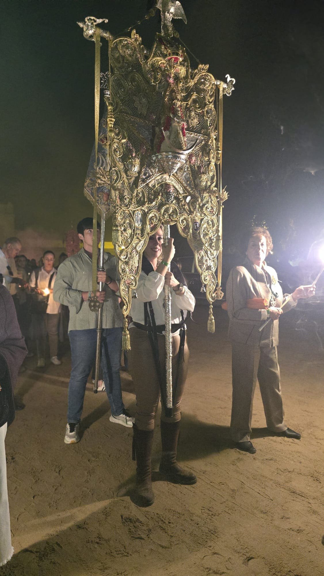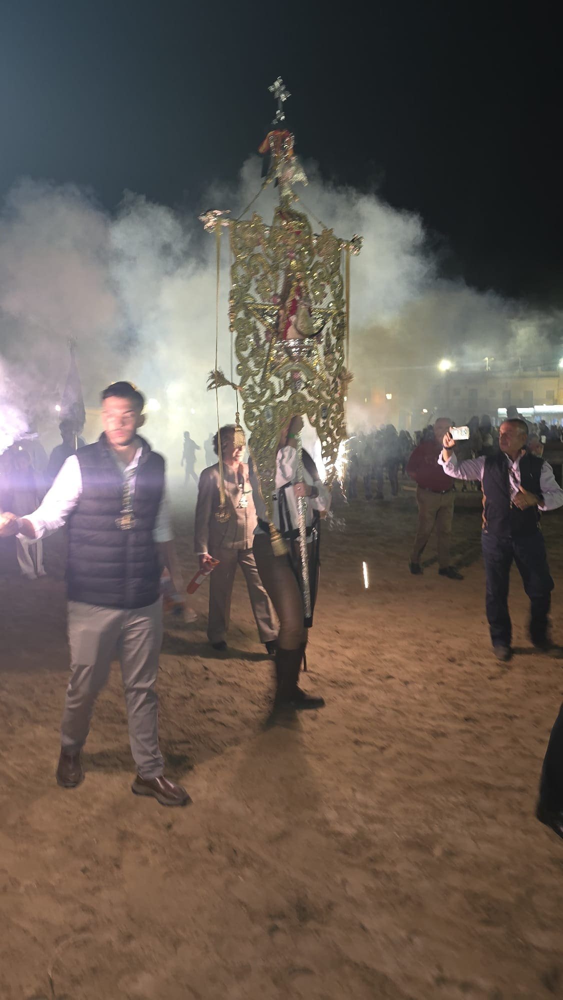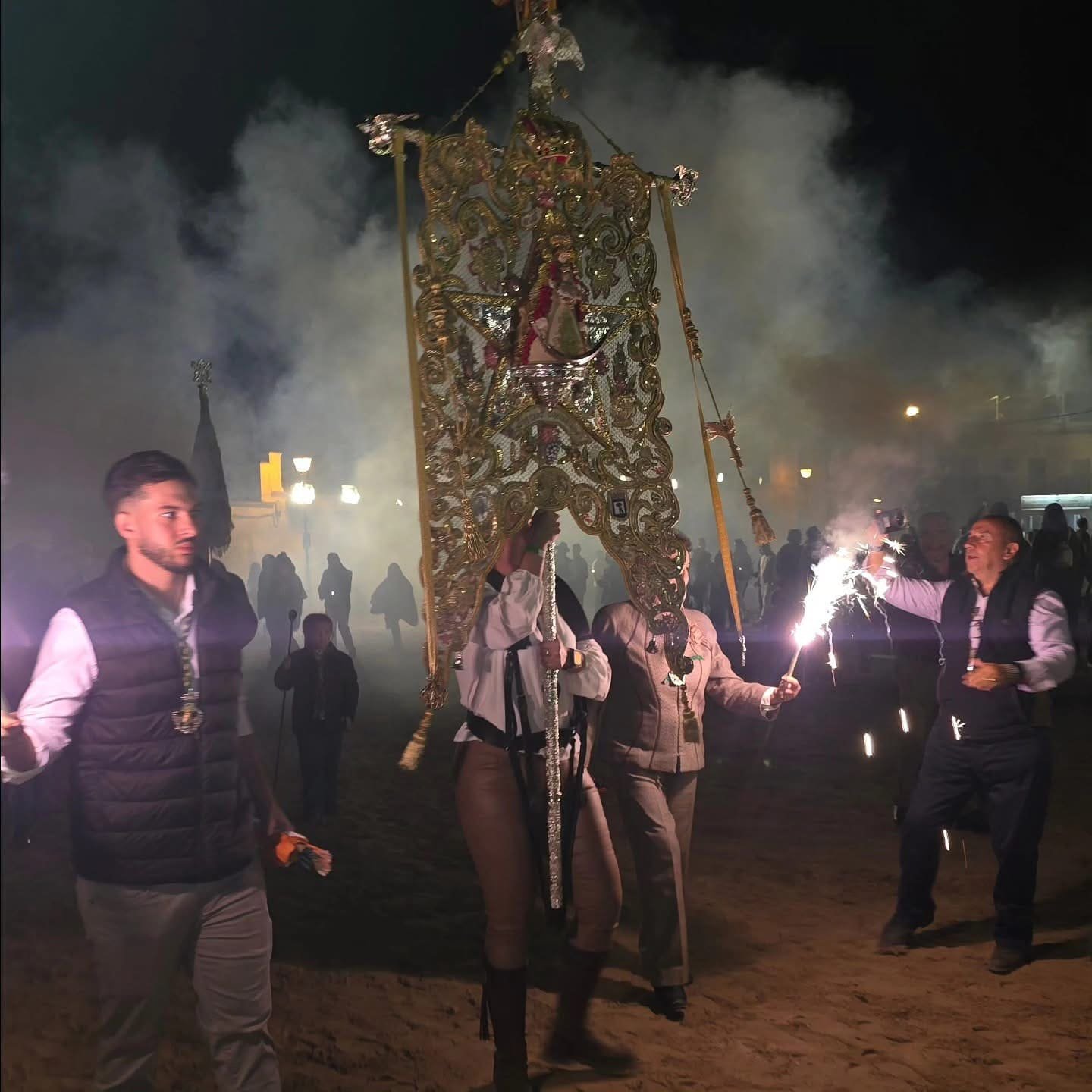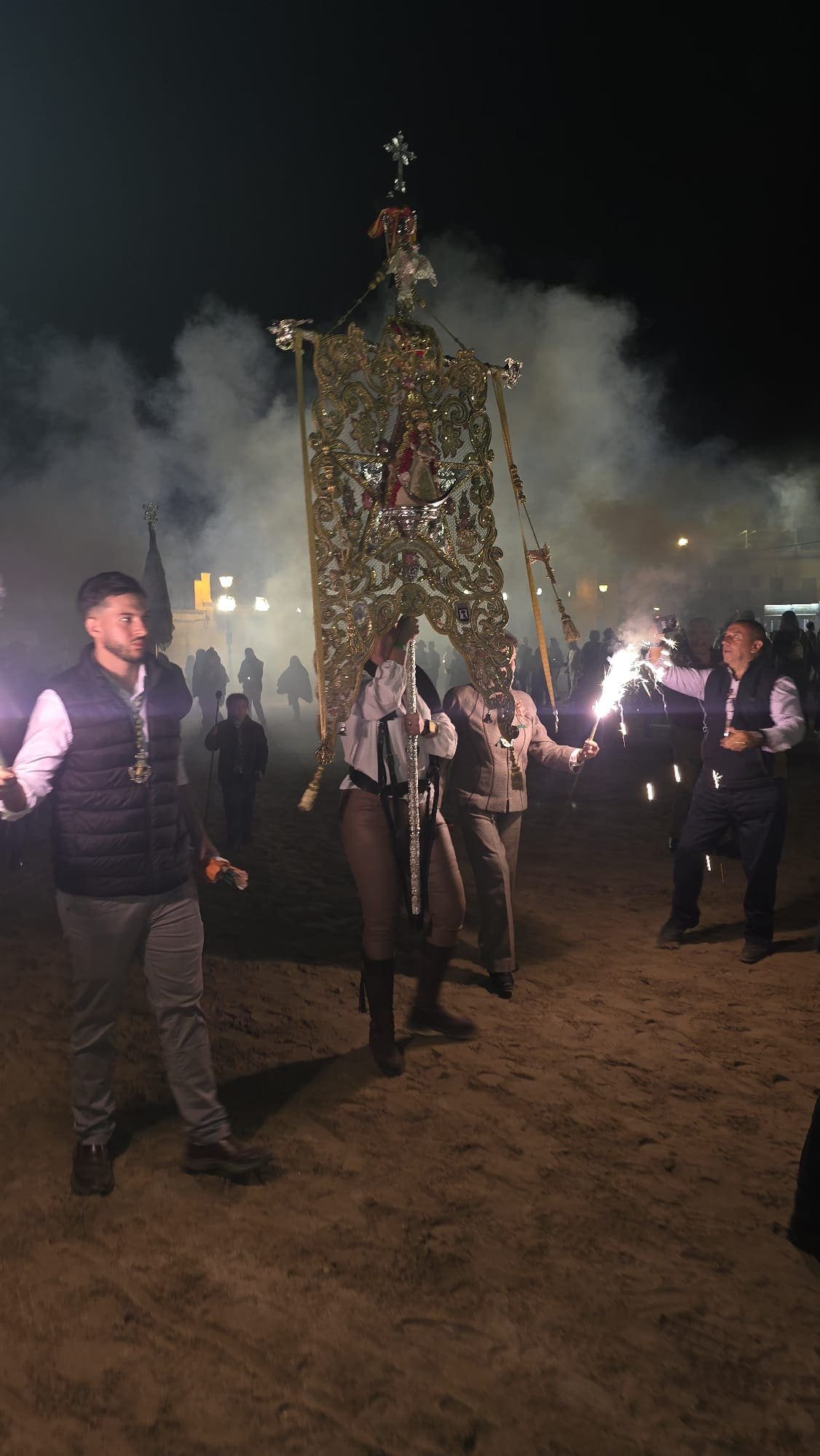 Después, el Santo Rosario recorriendo los alrededores de la Ermita, envolviendo el aire en plegarias y emoción. Cada Ave María es un suspiro de devoción, cada mirada a Ella, un acto de amor sincero.